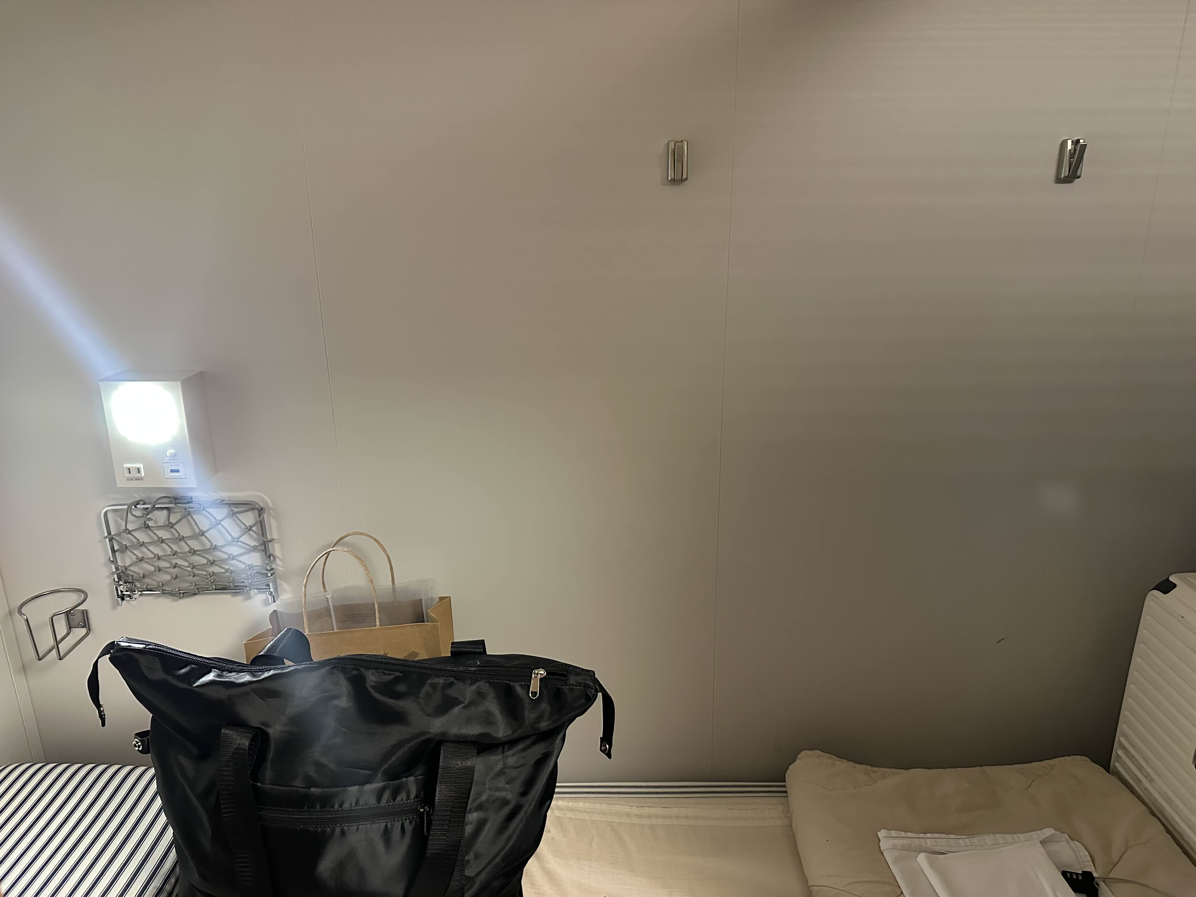 옷이나 가방을 걸 수 있는 걸이도 있고 개인등, 충전콘센트도 하나씩있어 너무 좋았어요ㅎㅎ