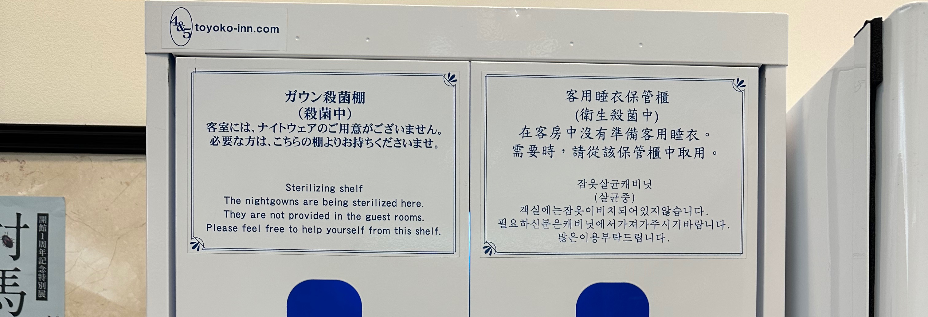 로비 자판기 옆에 있는 캐비넷에는 잠옷이 비치되어 있어 원하는 사람은 꺼내어 갈 수 있었어요